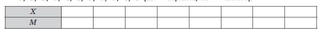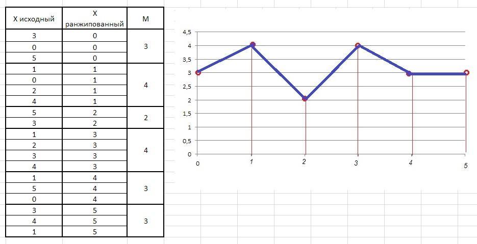 Побудуй полігон частот значень випадкової величини X : 3 ; 0; 5; 1; 0; 2; 4; 5; 3; 1; 2; 3; 4; 1; 5; 0; 3; 4; 1(X - варіанта, М-частота).
