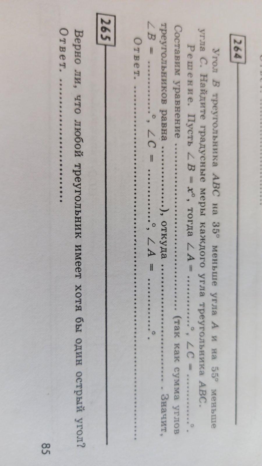 В=х, то А=х+35, С=х+55. составим уравнение . х+х+35+х+55=180 , так как сумма углов треугольника =180. приведем подобные