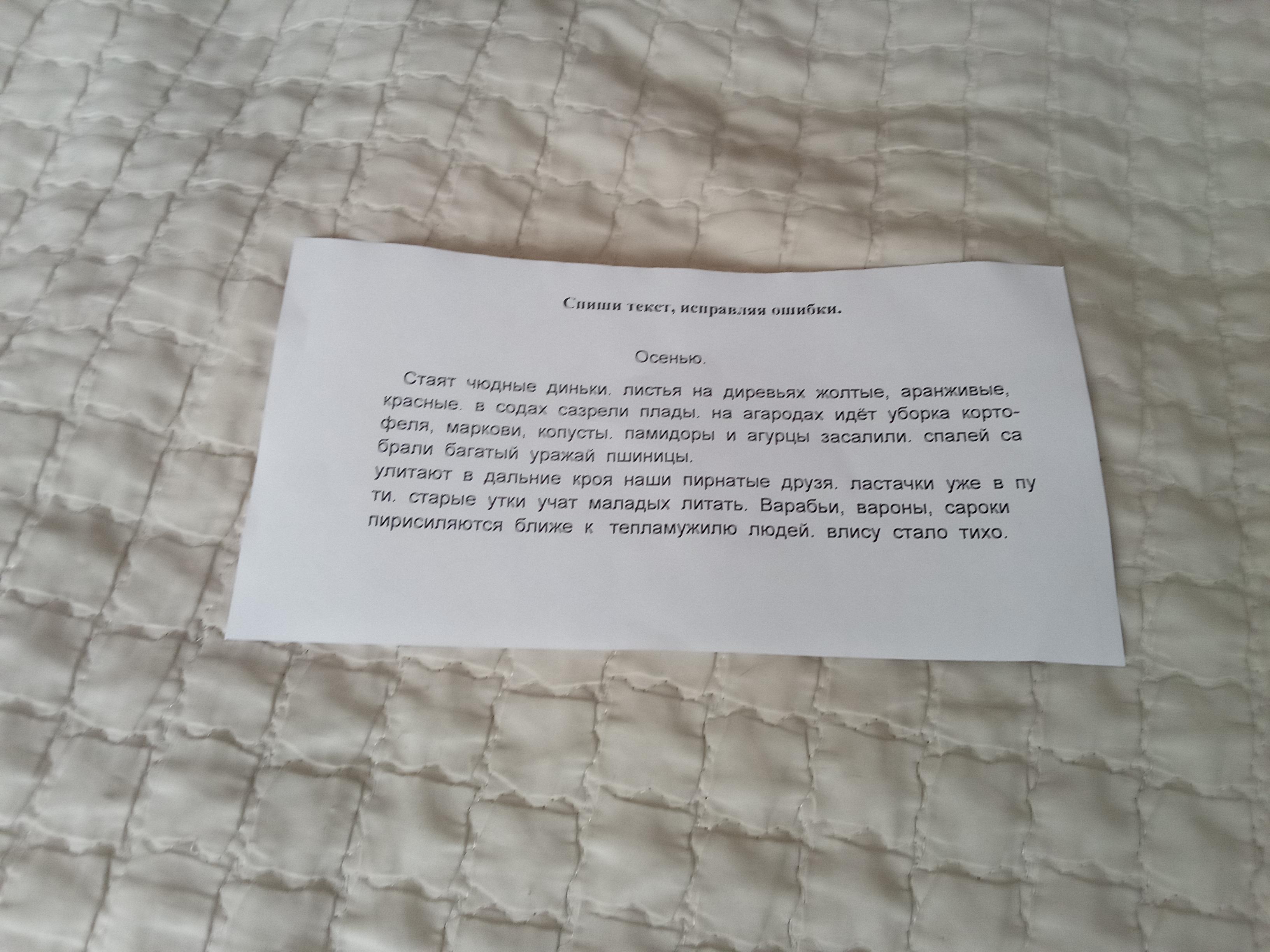 Стоят чудные деньки. Листья на деревьях жёлтые, оранжевые, красные. В садах созрели плоды. На огородах идёт уборка картофеля,моркови,капусты. Помидоры и огурцы засолили. С полей собрали богатый урожай пшеницы.