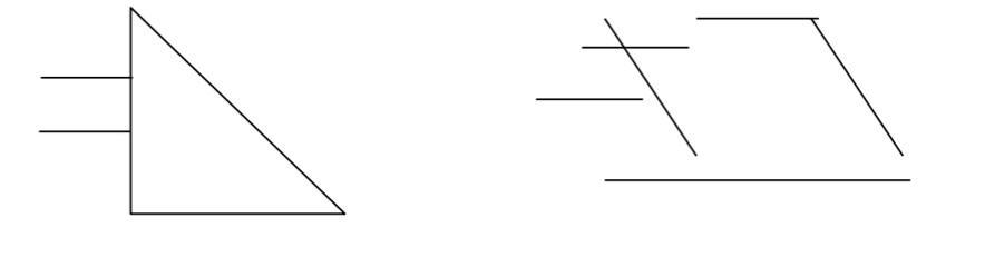 Не вижу грани у второй. У первой прямоугольный треугольник.