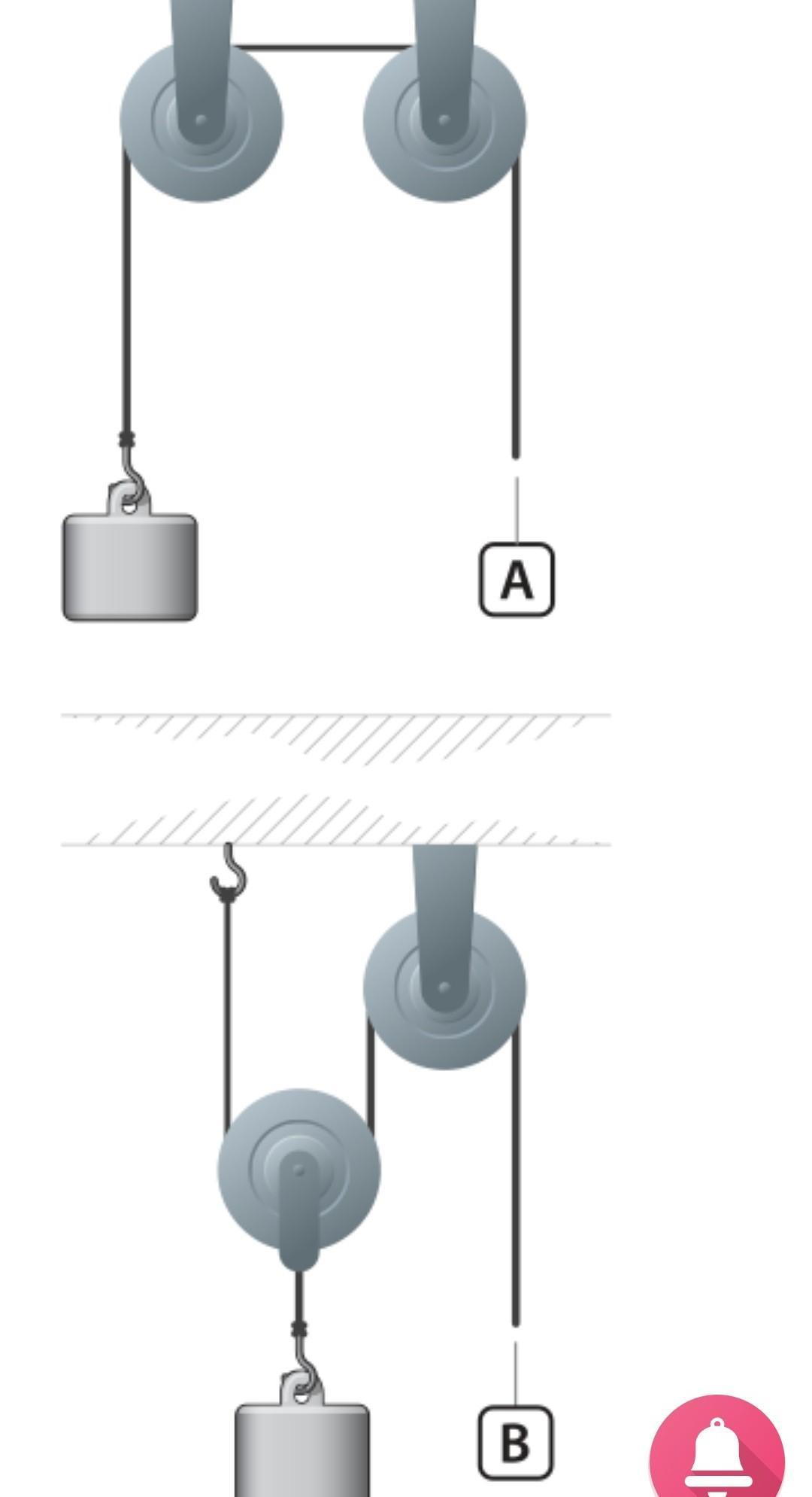 для подъема одного и того же груза весом 42 Н используют две системы блоков.