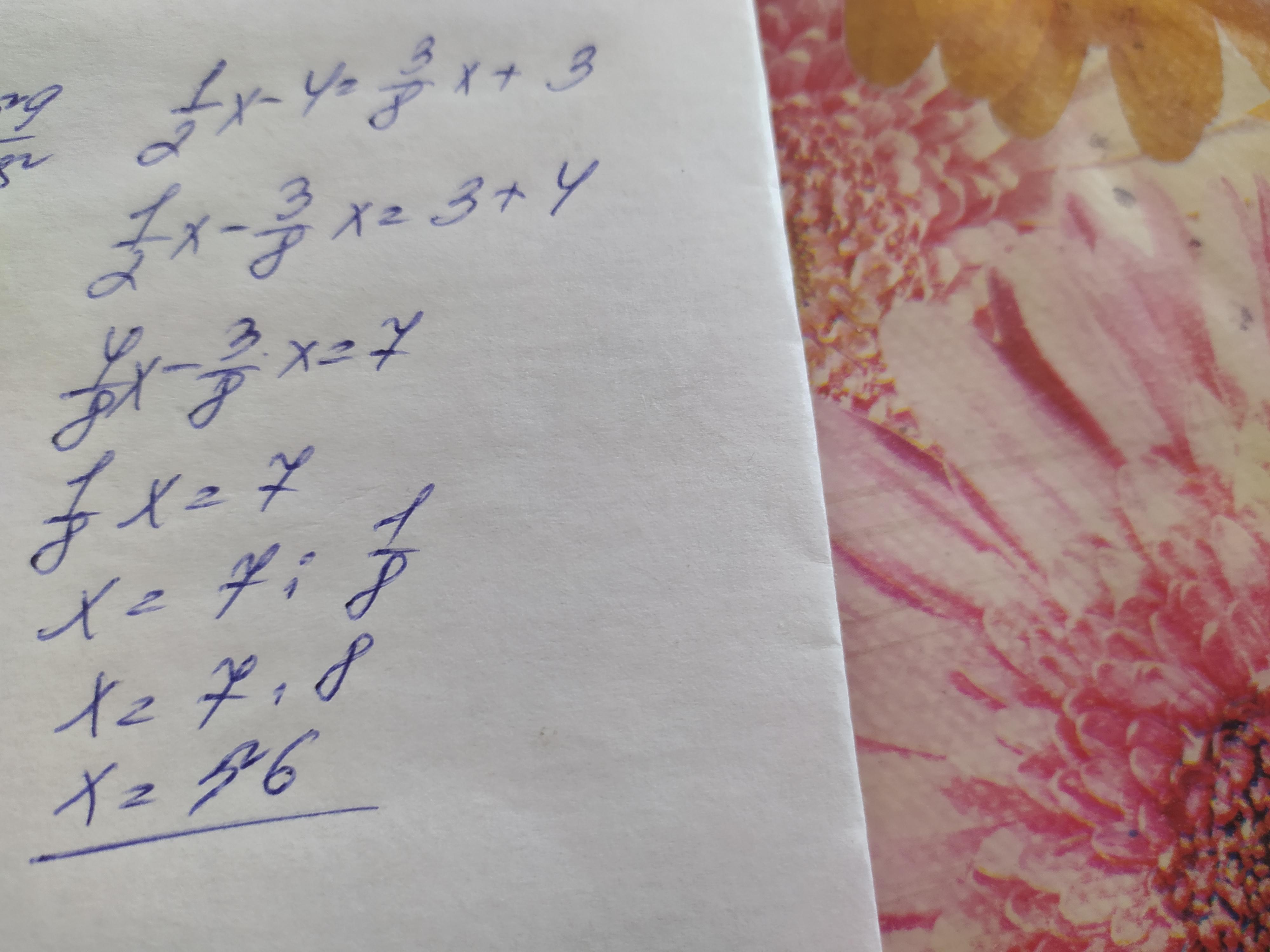 1/2x-4=3/8x+3
