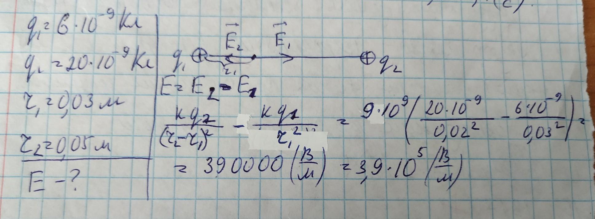 6 нКл и 20 нКл у точці, яка находиться між зарядами на відстані 0,03 м від