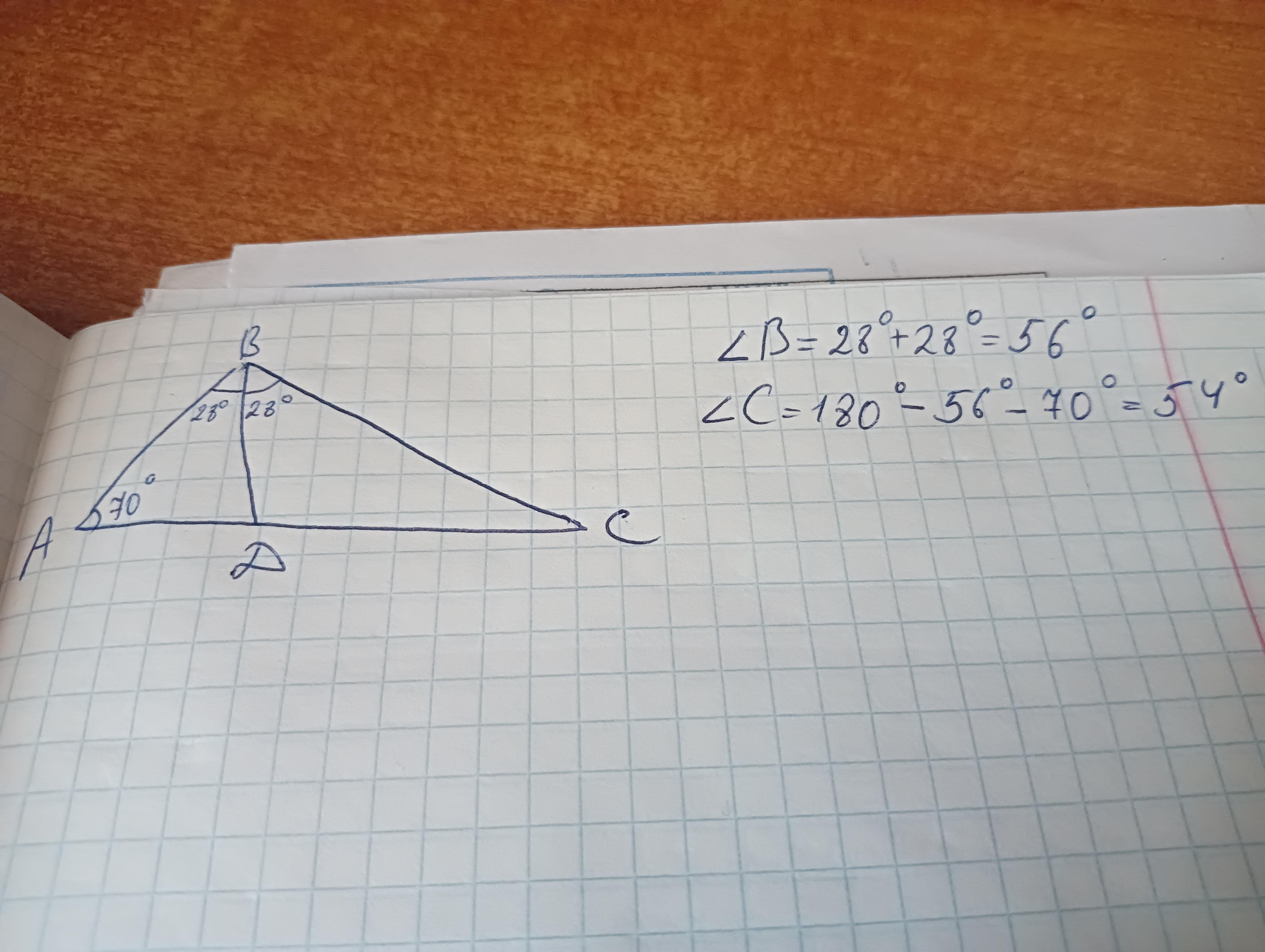 Если угол ABD=28°, значит угол CBD тоже будет 28°.