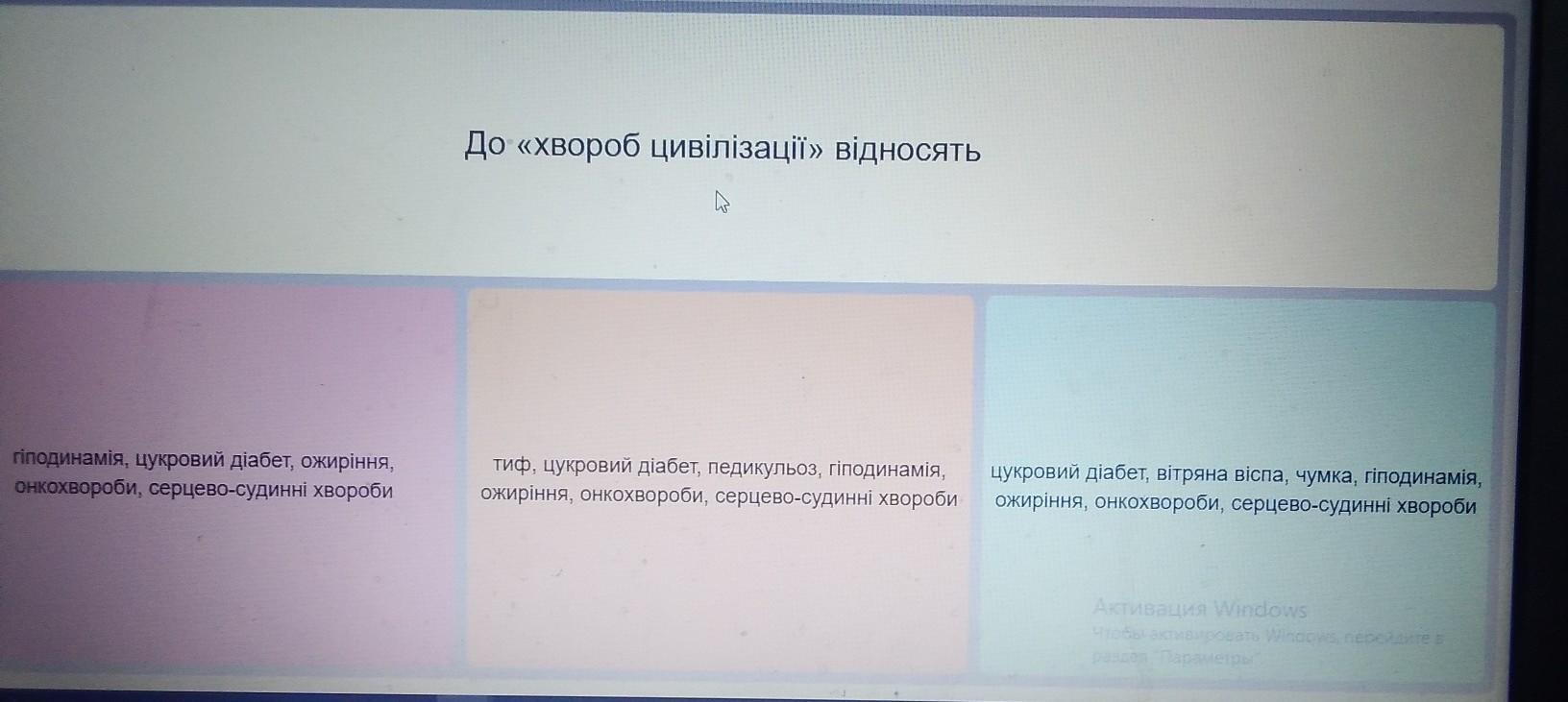Гіподинамія, цукровий діабет, ожиріння, онкохвороби, серцево-судинні хвороби.