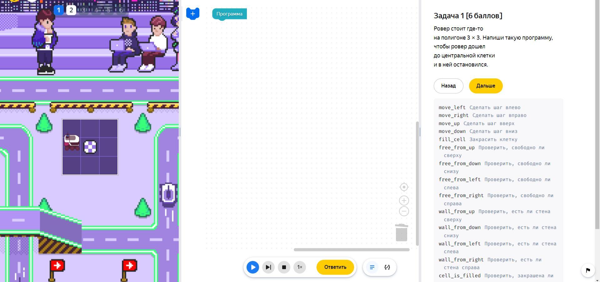 на полигоне 3 × 3. Напиши такую программу, чтобы ровер дошел
