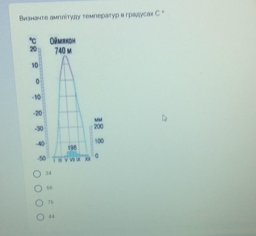 Амплітуда - це різниця між найвищою та найнижчою температурою. тобто, на рисунку є -50 та ~16, тобто амплітуда - 66.