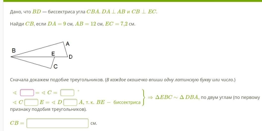 Угол СВЕ = Угол DBA (ВЕ - биссектриса)