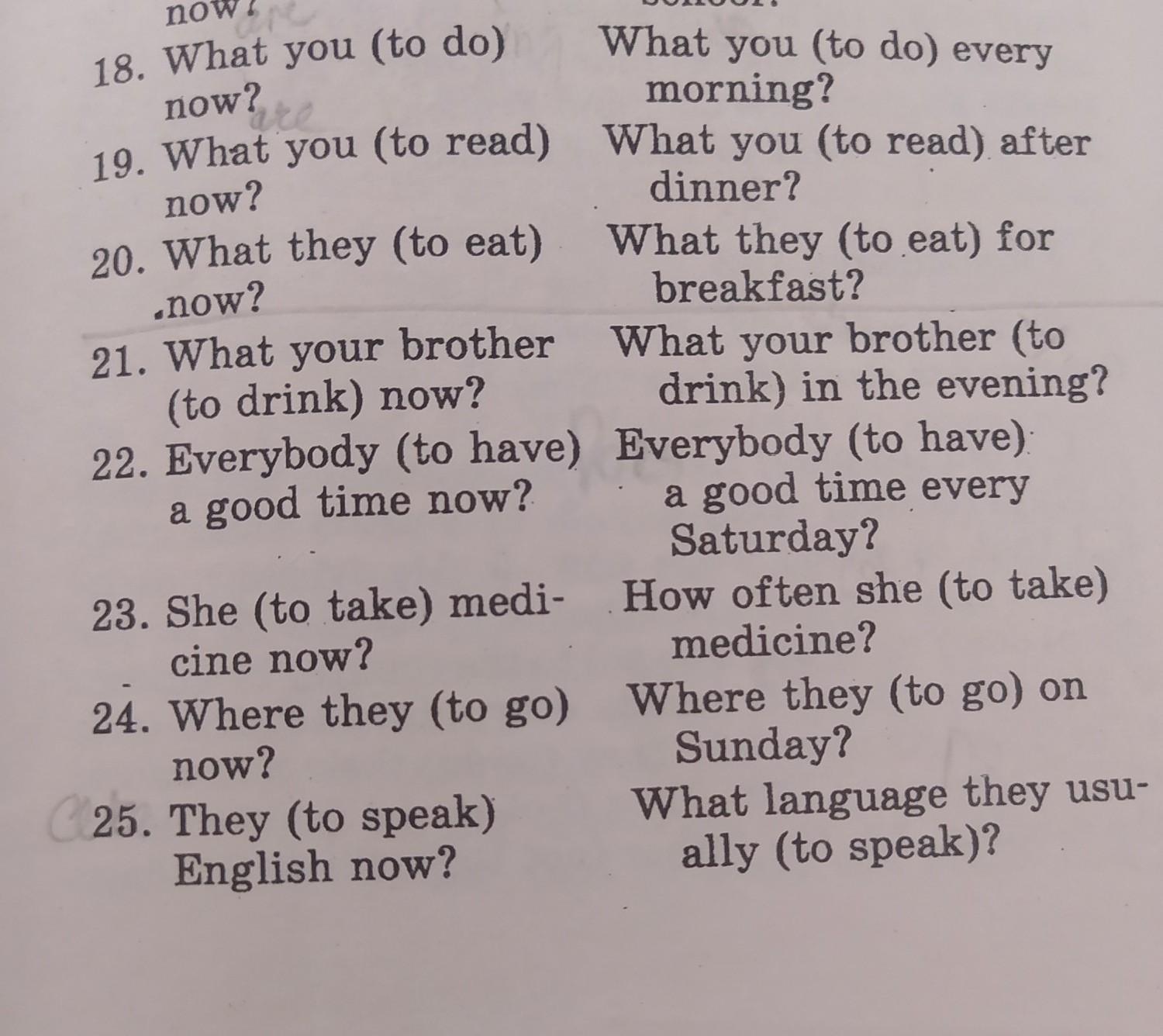 прашу помогите нужно раскрыть скобки употребляя глаголы в present continuous или в present simple