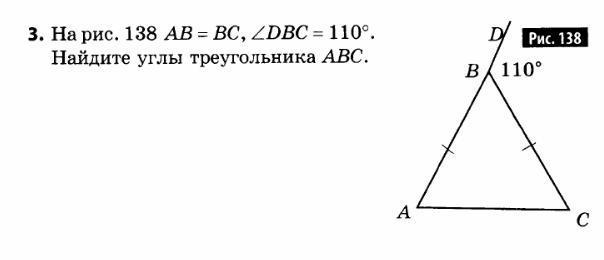 3. Углы треугольника АВС равны 70°, 55°, 55°.