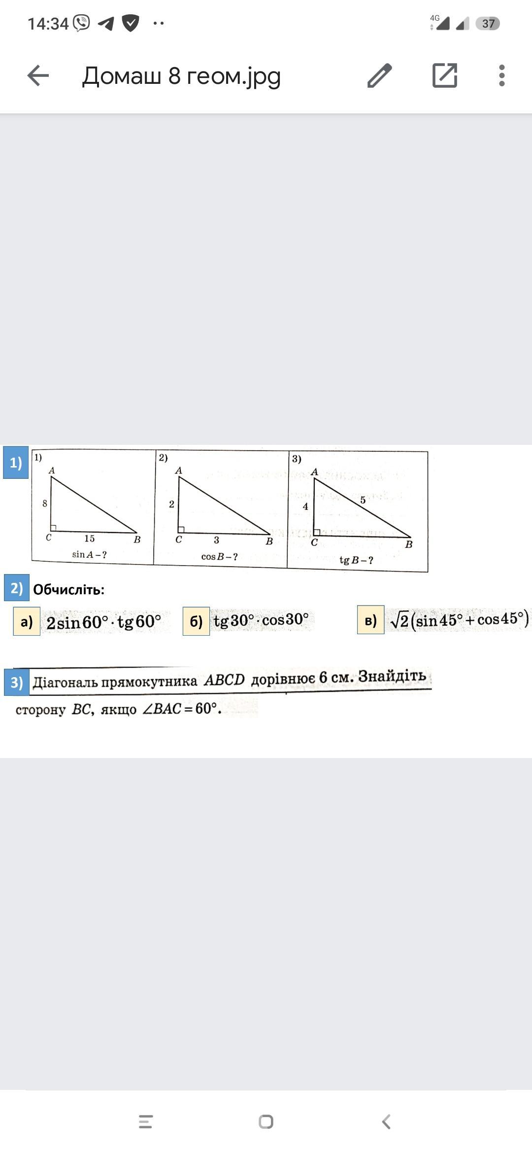 2) Косинус угла - это отношение прилежащего катета к гипотенузе, тогда: