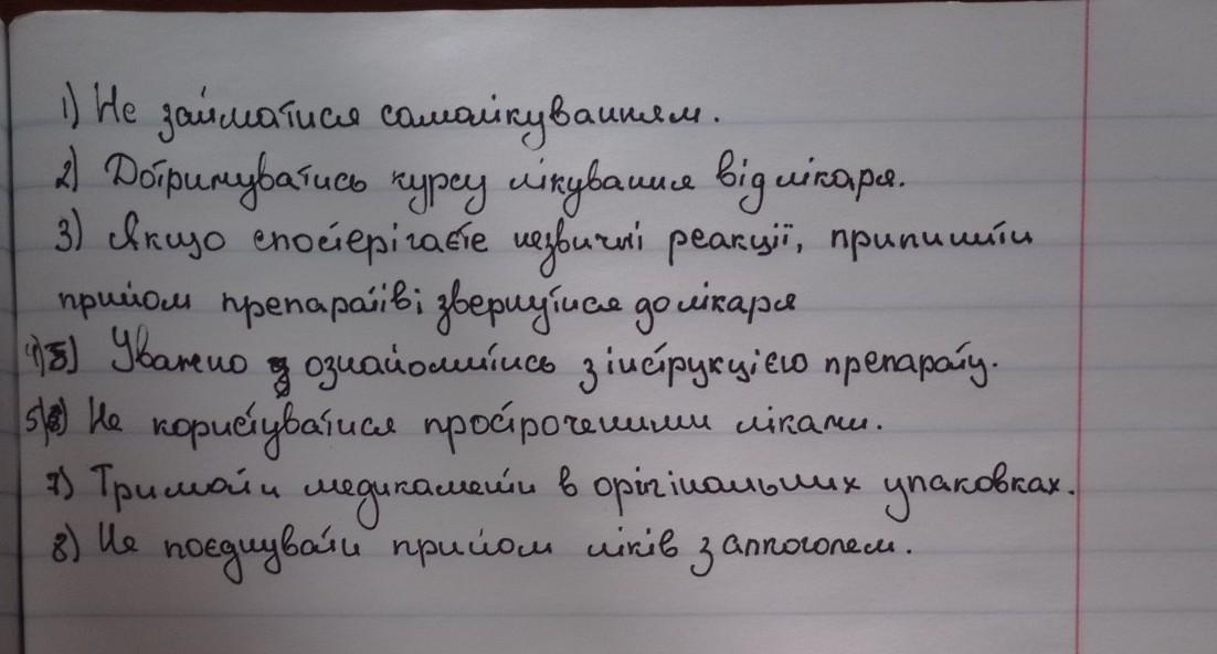 2) Кожен препарат має побічні дії, враховувати це при вживанні