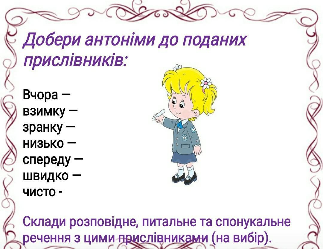 Розповідне: Сьогодні зранку я прокинулась і одразу пішла до школи.