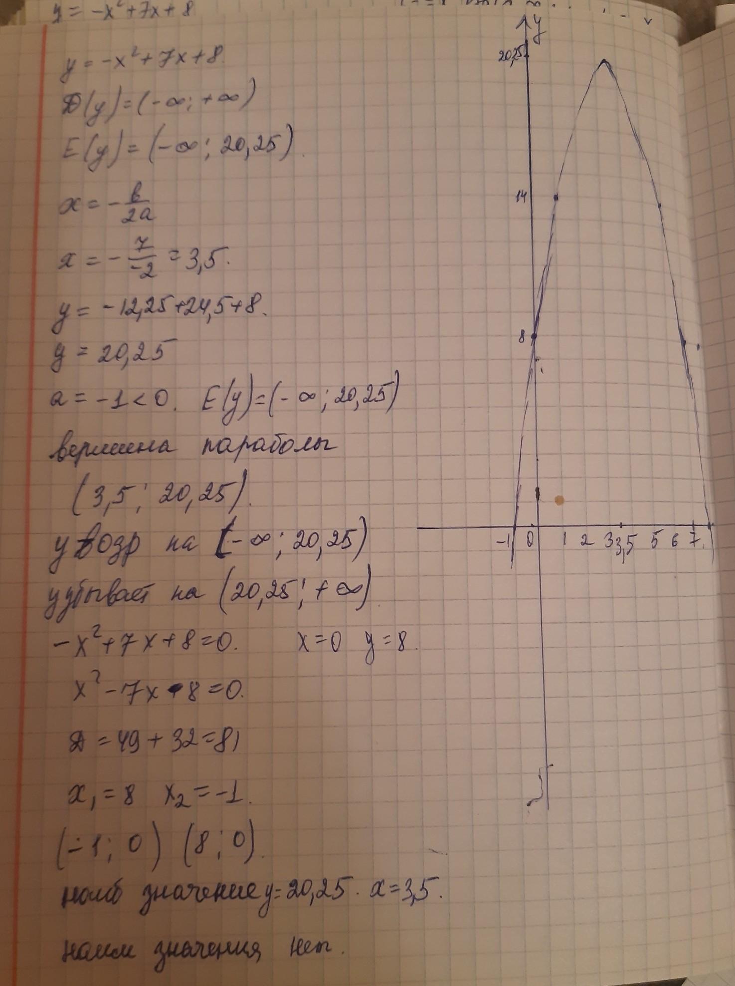 №4 (4 балла). Постройте график функции y=−x2+7x+8. С помощью графика