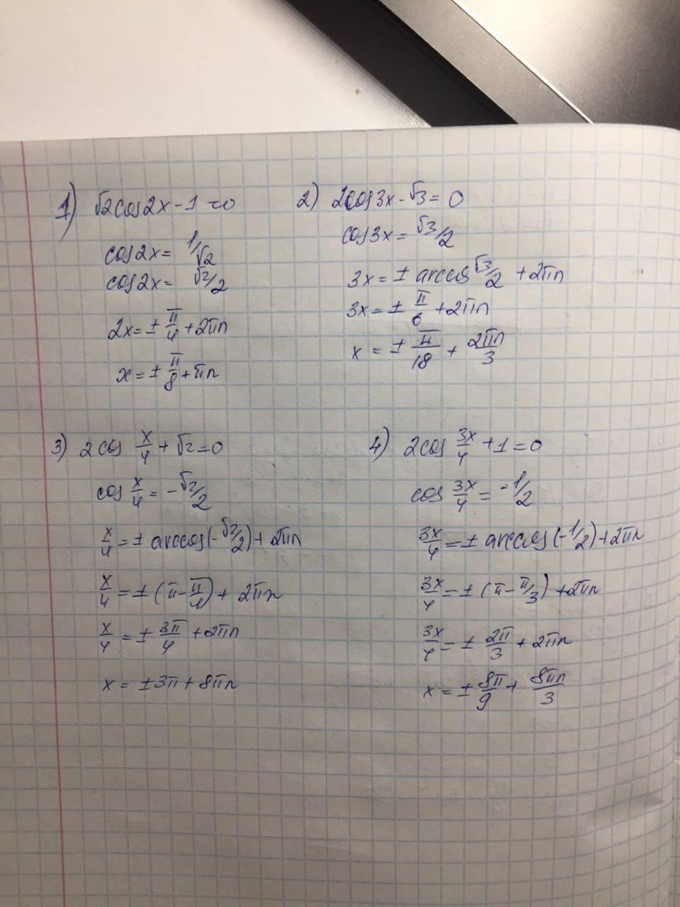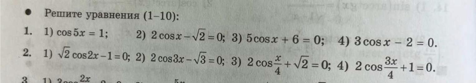 Помогите решить уравнения под номером 2 (1-4).