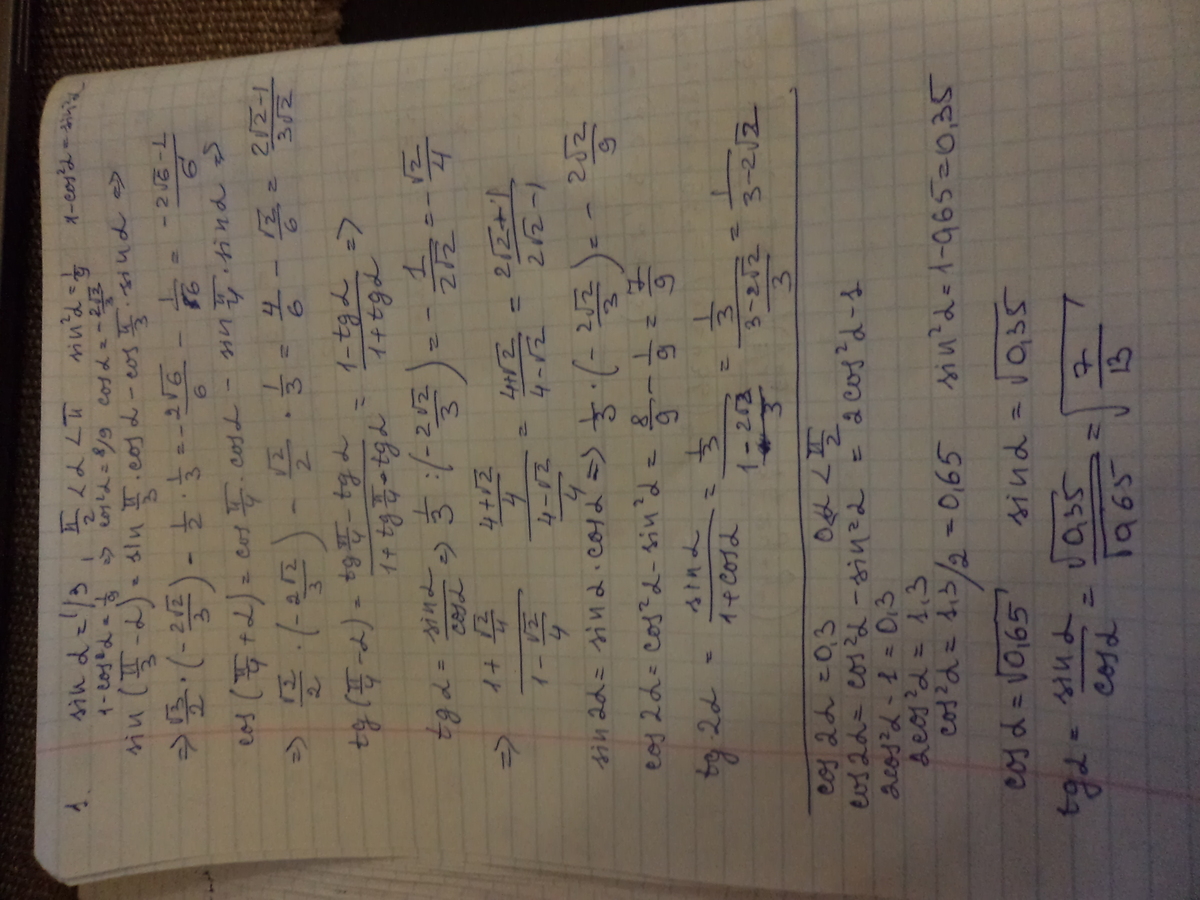1.sin(pi/3-a),cos(pi/4+a),tg(pi/4-a),sin2a,cos2a,tg2a, если sina=1/3, pi/2<a<pi