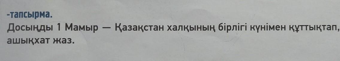 Хат:досым!Мен сені Қазақстанның бірлігі күнімен құттықтаймын екеуміз бірге достығымыз таусылмасын,бірлігіміз бірге босын.Құрметті Досым!