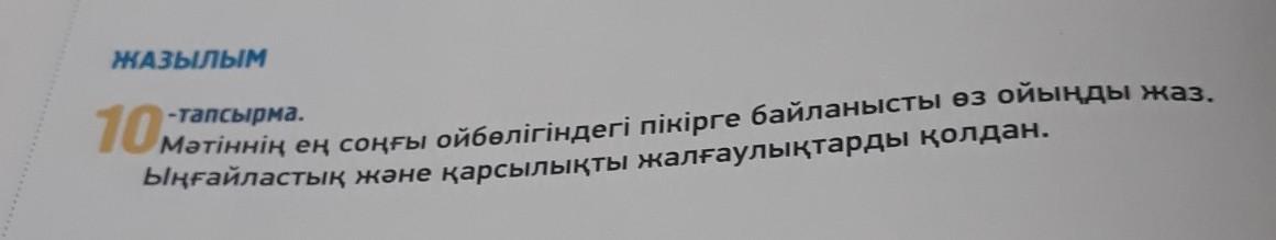ЖАЗЫЛЫМ -тапсырма. О . Мәтіннің ең соңғы ойбөлігіндегі пікірге байланысты өз ойыңды жаз. Ыңғайластық және қарсылықты жалғаулықтарды қолдан.