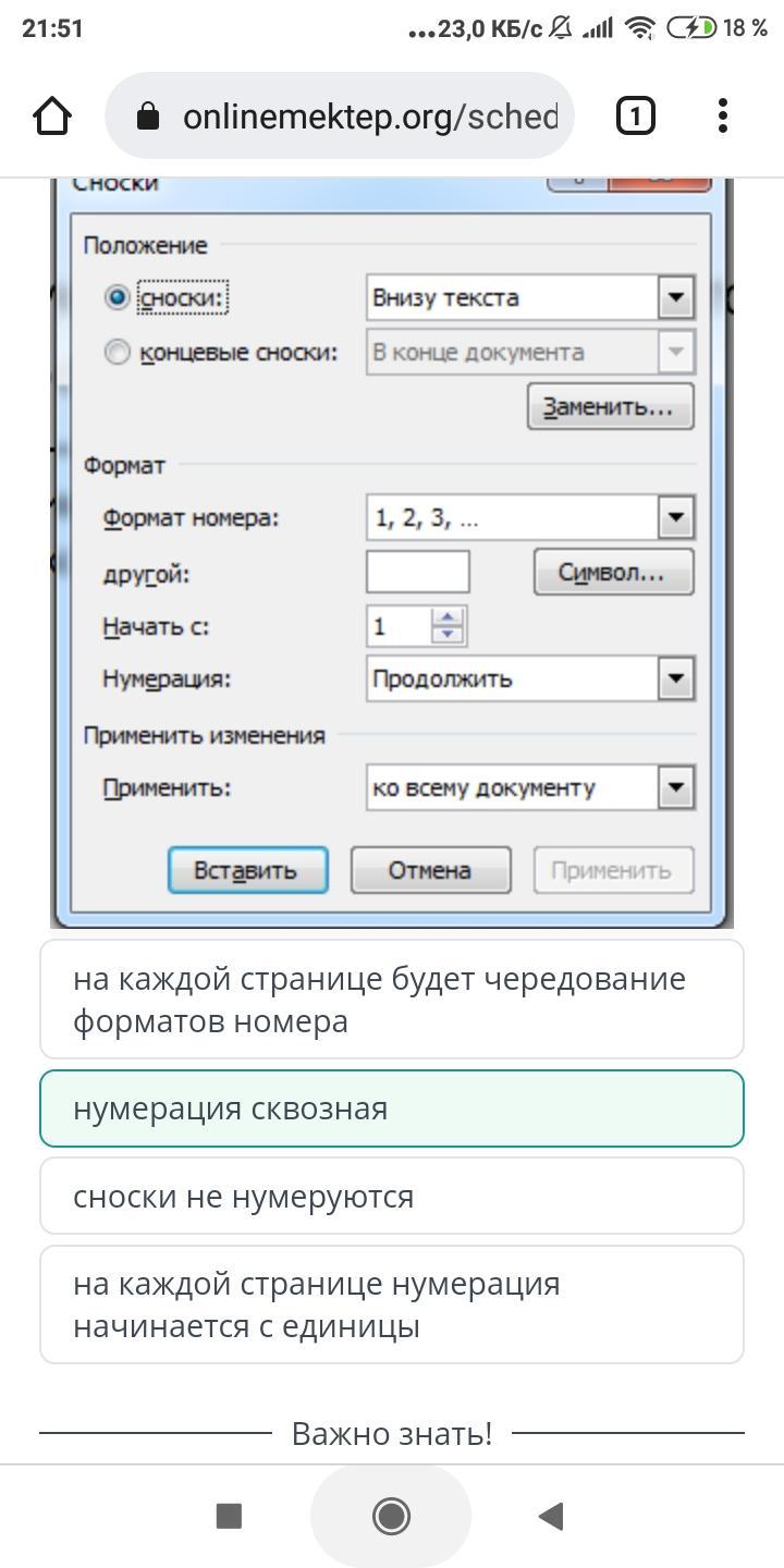 Изучи предложенные параметры и определи, каким образом будут пронумерованы обычные сноски в