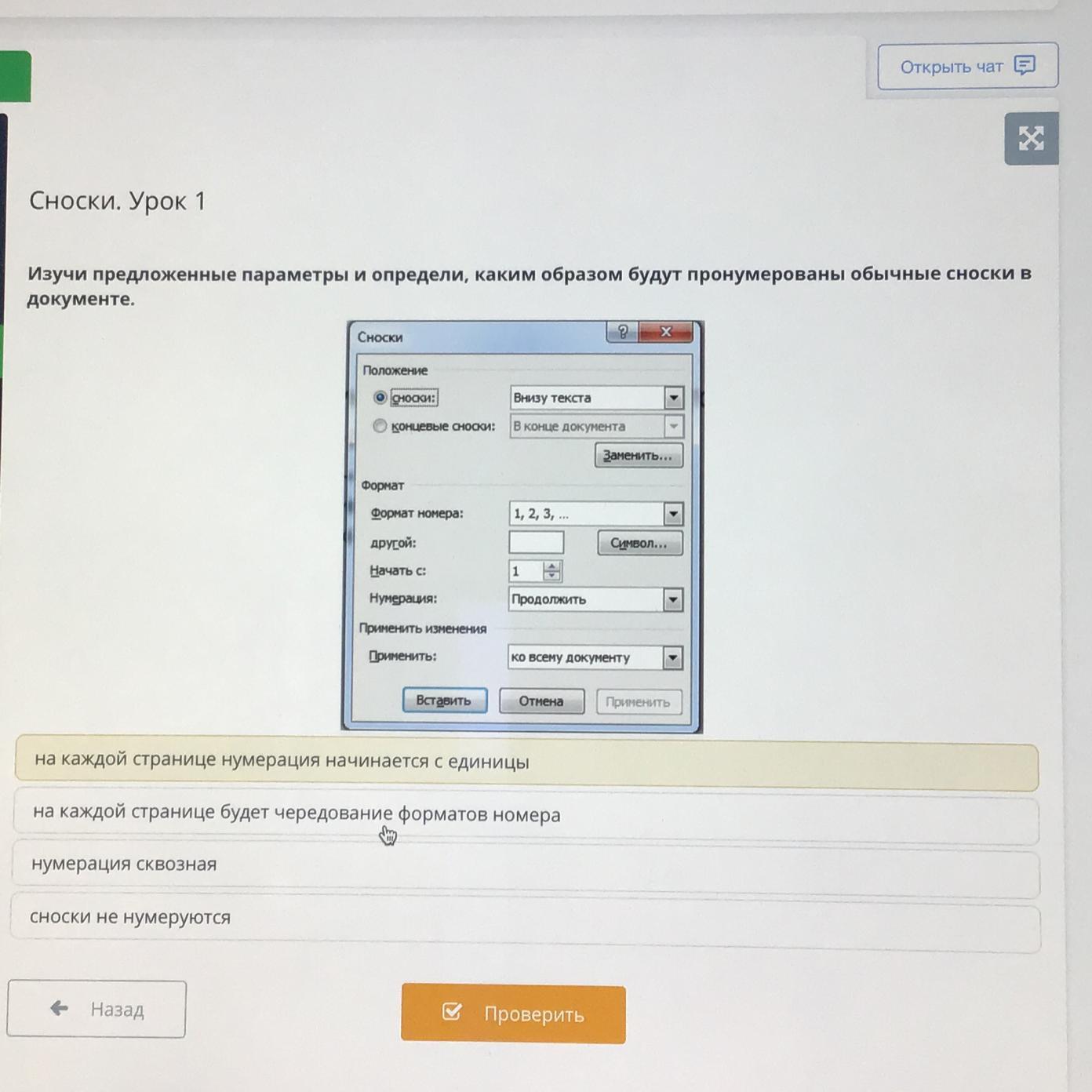 Изучи предложенные параметры и определи, каким образом будут пронумерованы обычные сноски в