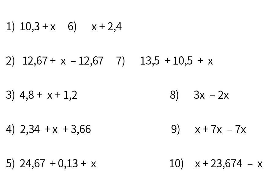 1) 10,3+2,4=12,7 2) 12,67+2,4 -12,67=2,4 3) 4,8+2,4+1,2=7,4 4) 2,34+2,4+3,66=8,3 5)24,67+0,13+2,4=27,2