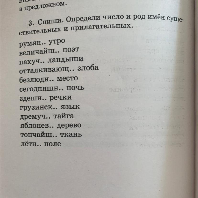 3. Спиши. Определи число и род имён суще-
