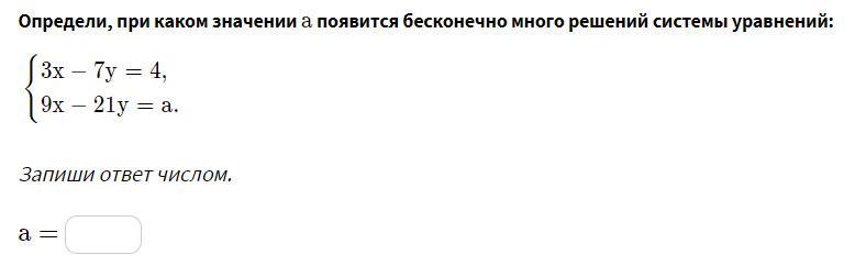 Определи, при каком значении a a появится бесконечно много решений системы уравнений: