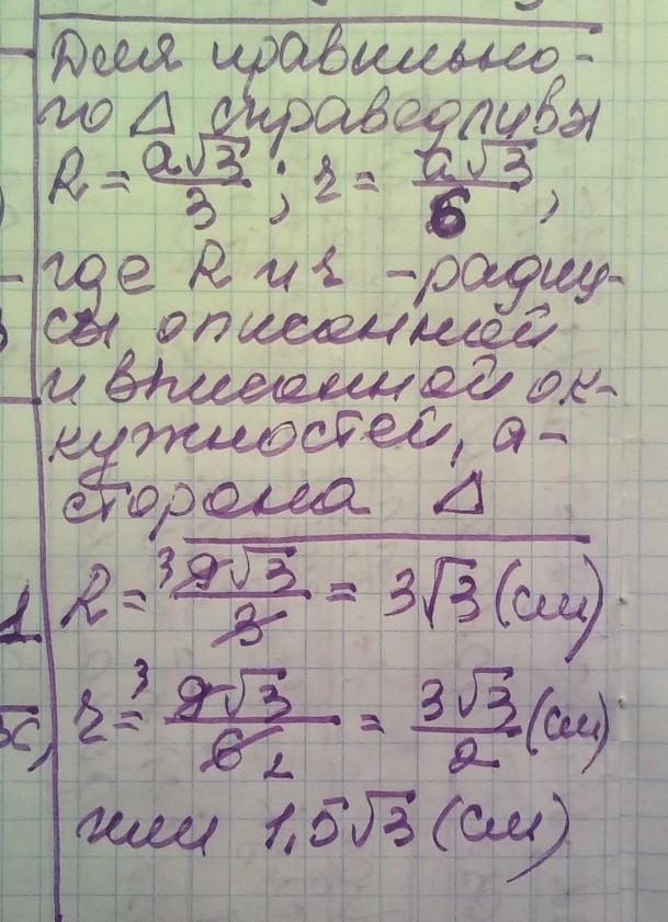 СРОЧНО ПОМОГИТЕ ПОЖАЛУЙСТА!!!!! сторона правильного трикутника дорівнює 9 см. обчисліть довжину кола, описаного навколо цього шестикутника, і кола, вписаного в нього.