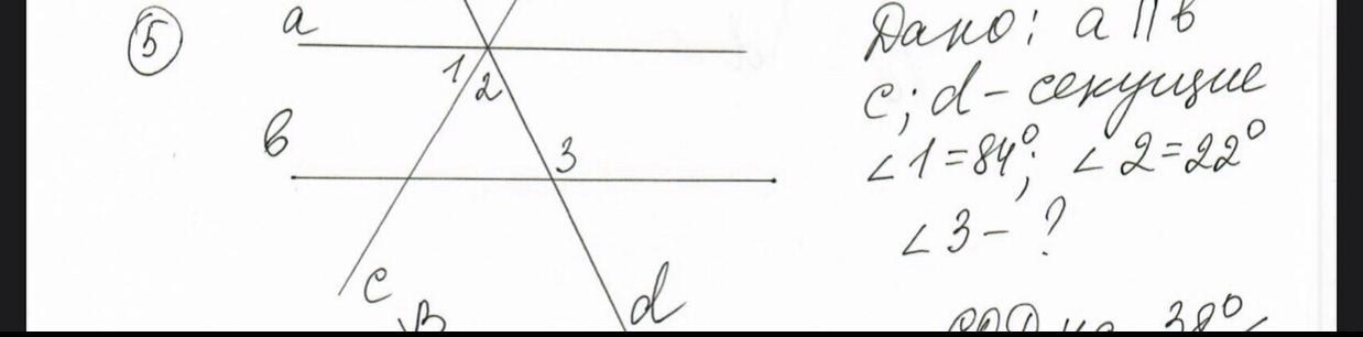 Угл 1 + Угл 2 = 84+22=106 градусов (возьмё этот большой угл как угл 4