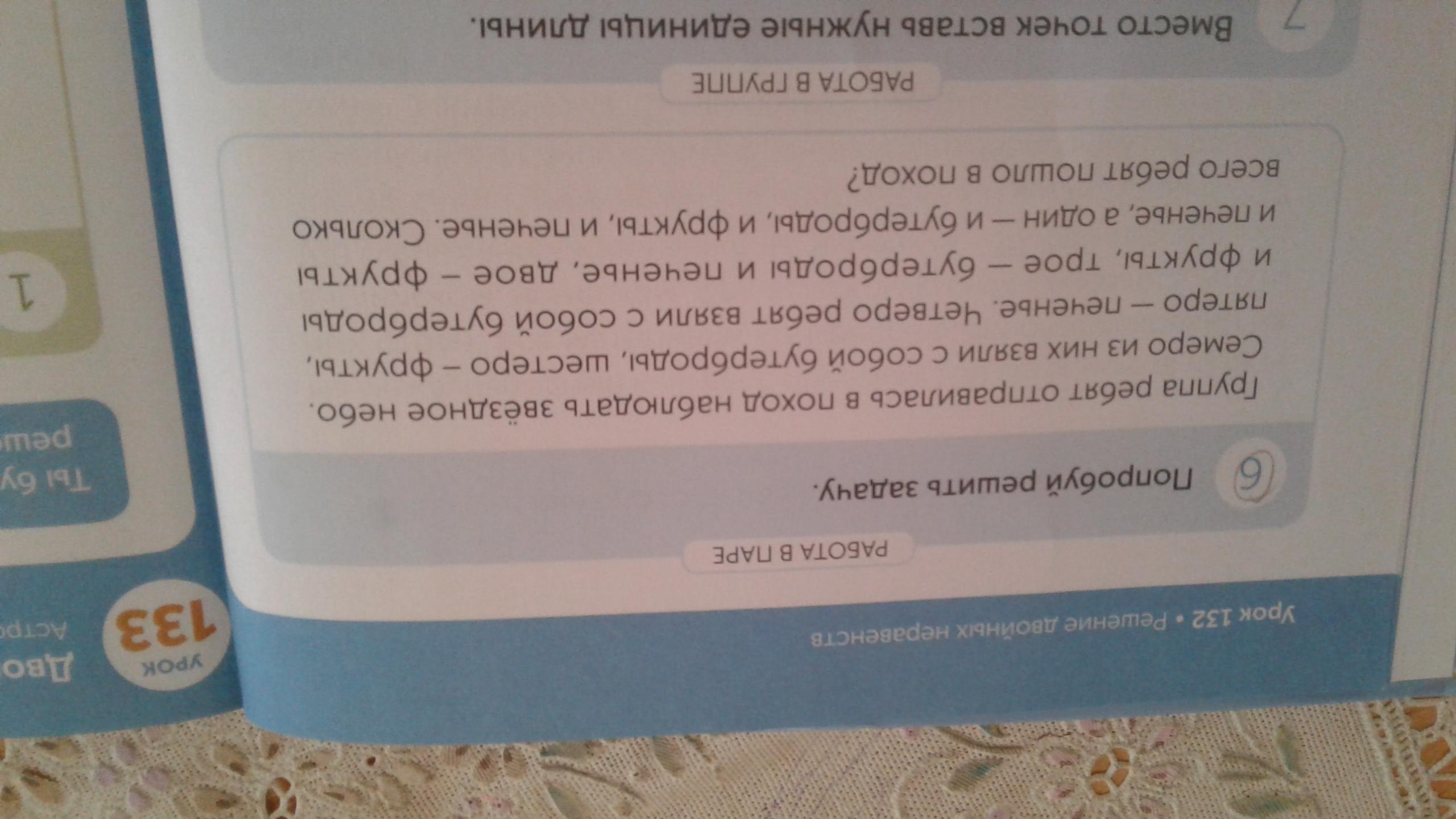 Семеро из них взяли с собой бутерброды, шестеро - фрукты,