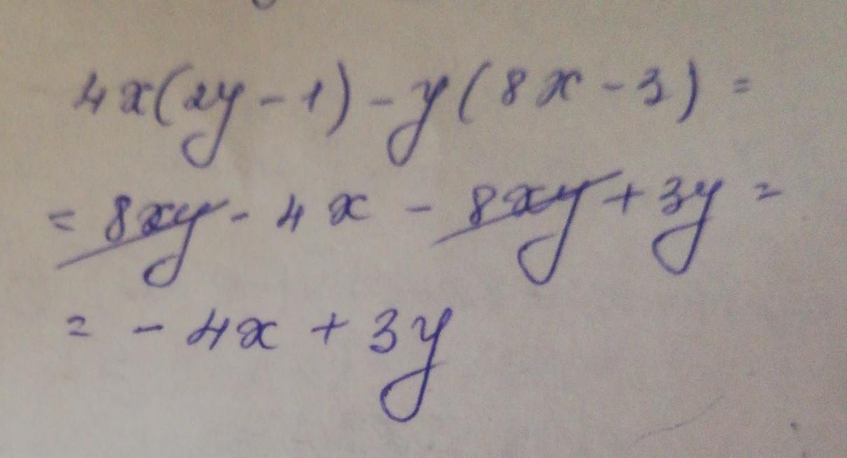 8ху - 4х - 8ху + 3у = - 4х + 3у