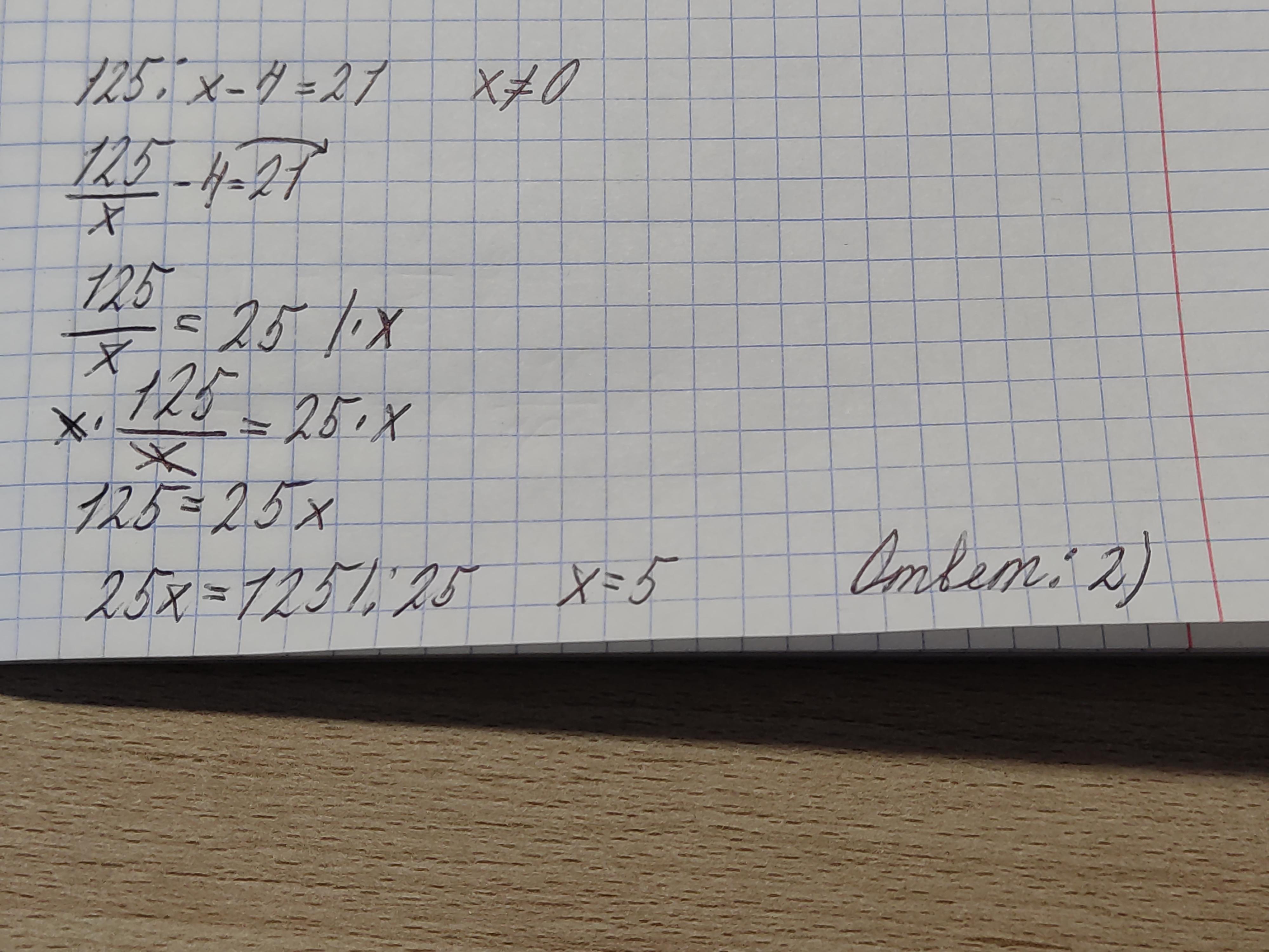 125 : х - 4 =21