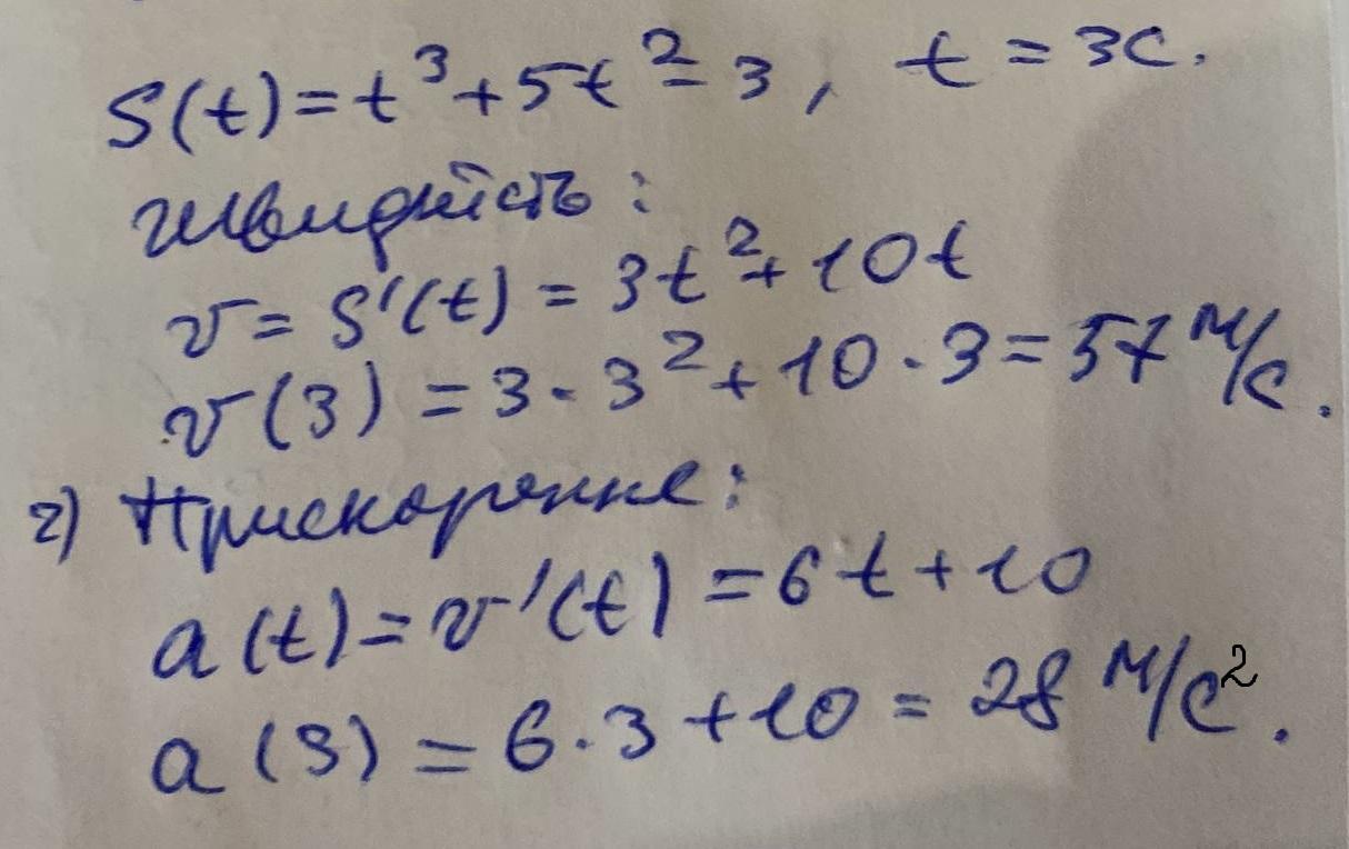 S(t) = t 3 + 5t 2 – 3, t = 3с.