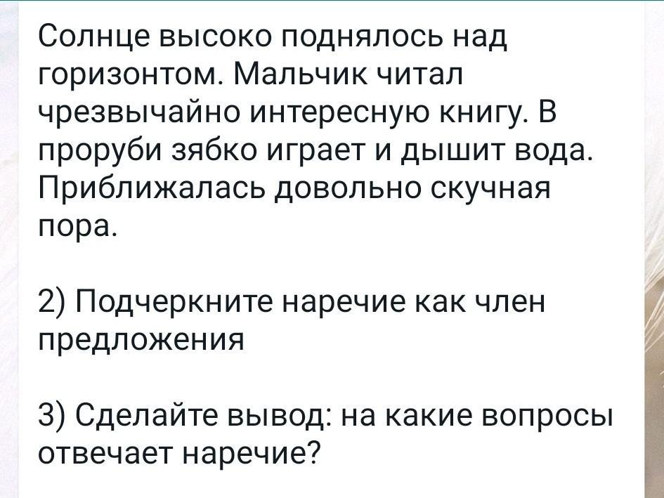 3) Солнце высоко(Наречие отвечает на вопрос как?) поднималось над горизонтом.