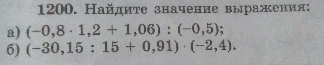а) (-0,8×1,2+1.06) ÷ (-0,5) = (0,96+1,06)÷(-1/2)=0,1÷(-1/2) = 1/10:(-1/2) = -1/10×2 = -1/5