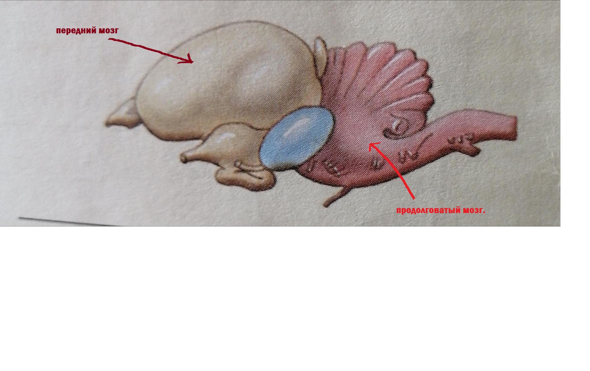 Объяснение: То что это именно гусиный мозг можно узнать по отчётливо видным "переднего мозга" и "продолговатого мозга". на фото.