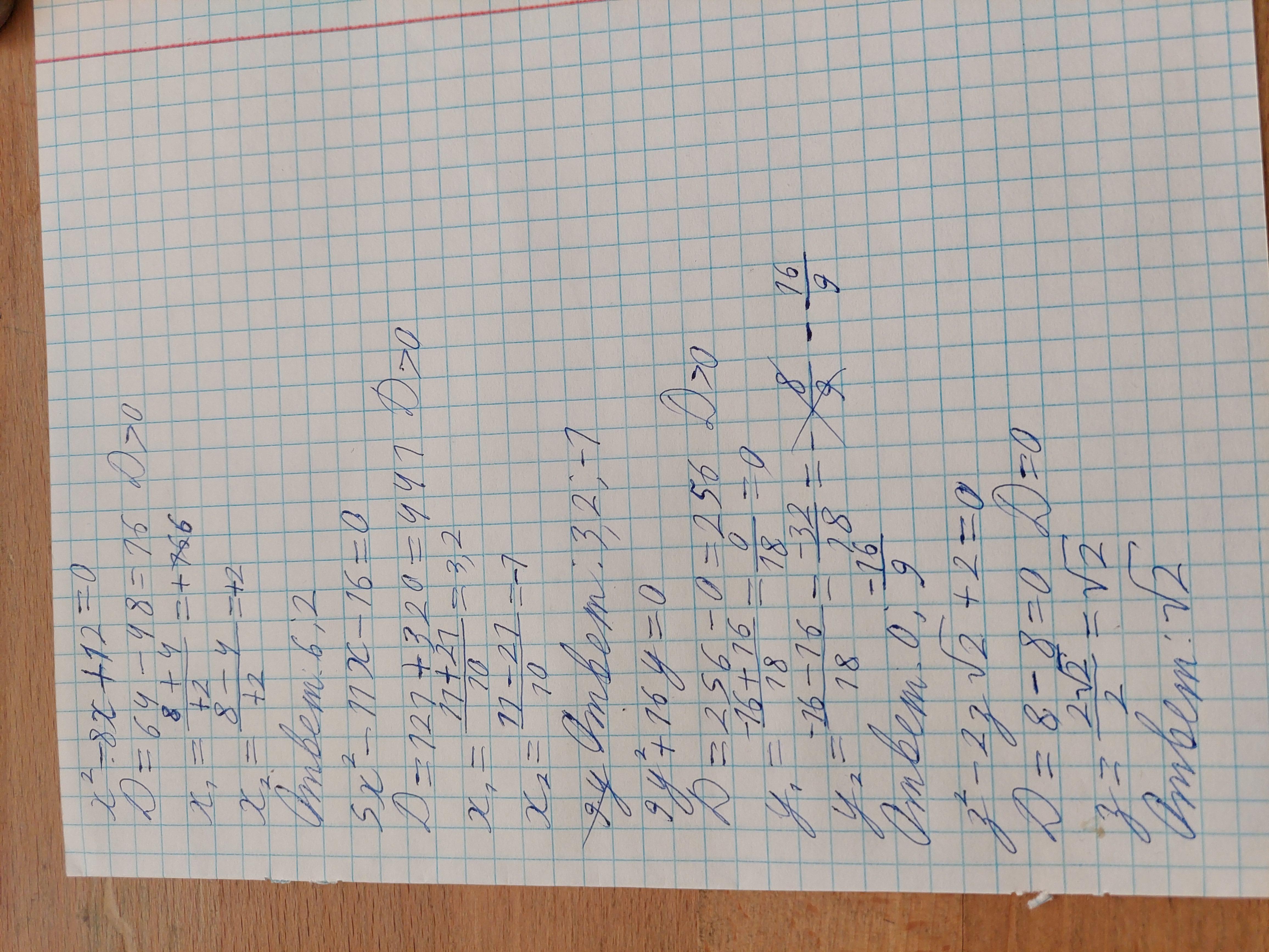 решите пожалуйста через дискриминант и в тетради если не сложно