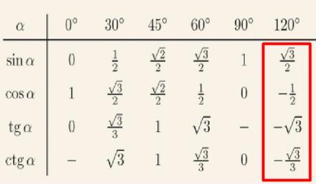 Cos 120° = cos ( 90+30) = cos 90° cos 30° - sin 90° sin 30° = 0*0.86 - 1*0.5=
