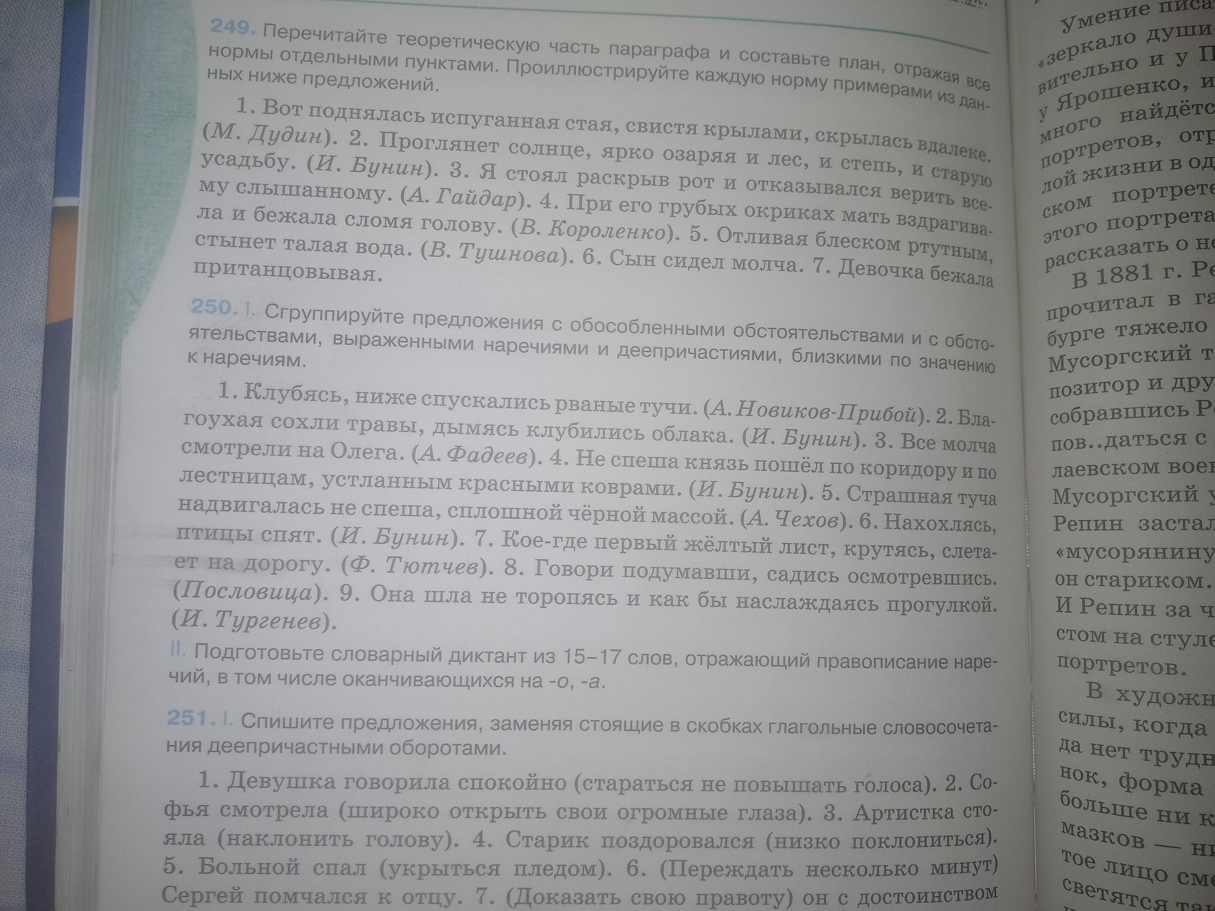Сгруппируйте предложения с обособленными обстоятельствами и с обстоятельствами, выраженными наречиями и деепричастиями, близкими по значению к наречиям.