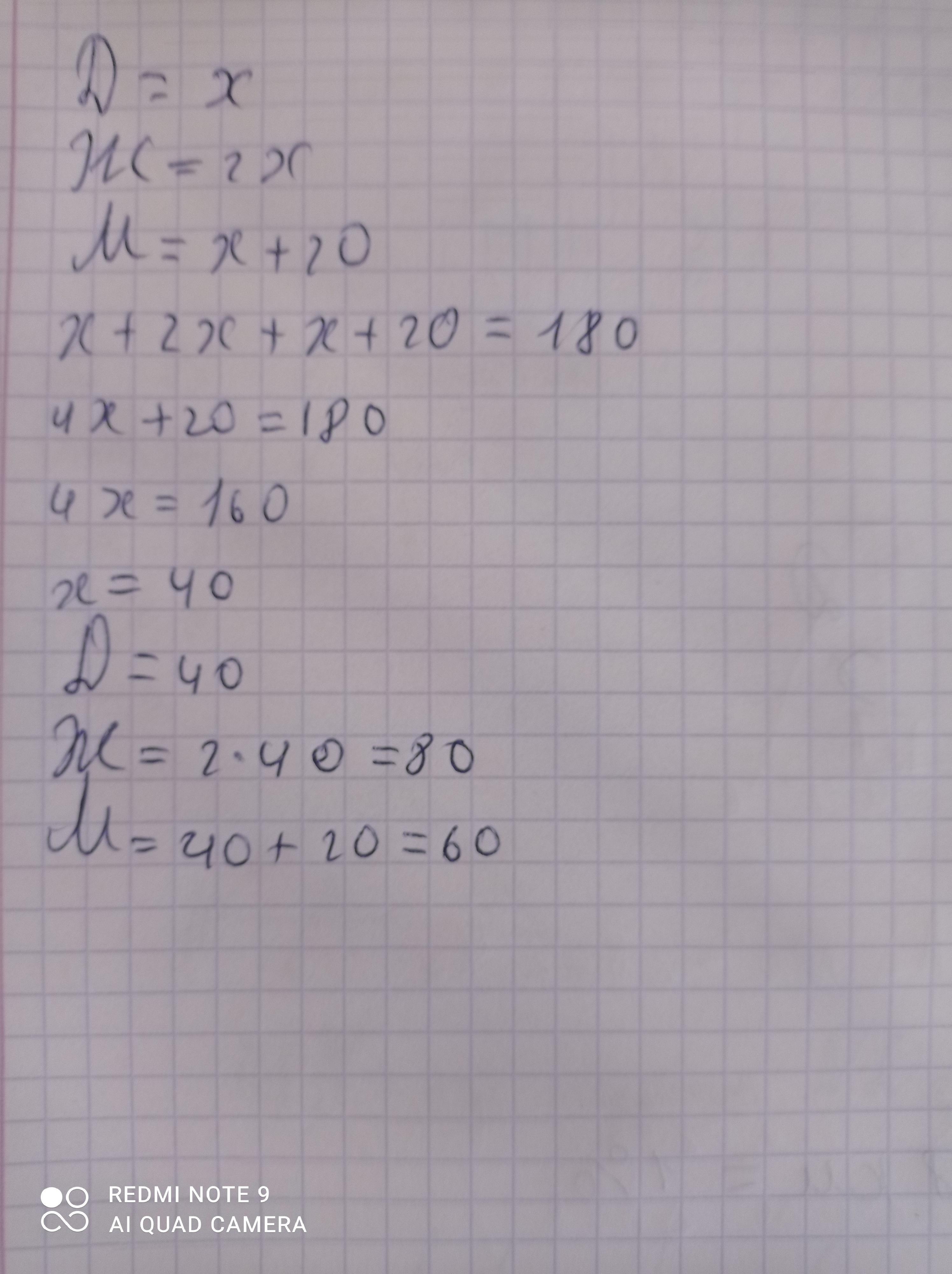 2х+х+х+20=180