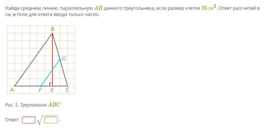 Средняя линия Δ ABC, параллельная AB = 2,5√74 см