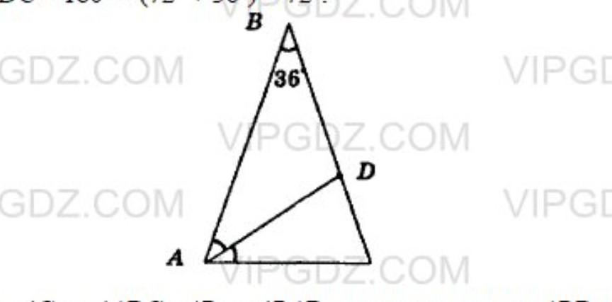 <BAD=<DAC=1/2 72°=36°(т.к AD-биссектриса).