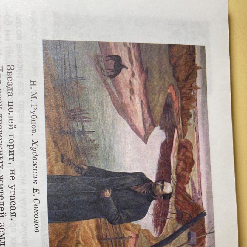 Н.М Рубцов,написал картину "звезда полей".На картине художник изобразил поле на котором стоит человек в черном пальто.На заднем плане видим лес, речку,лошадь с ее хозяином и деревенский домик.На переднем плане видно поле.На дворе Осень листва с травой желтеет.