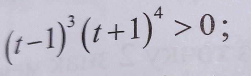 При подстановке большого числа например t = 100 , выходит плюс дальше так как у ( t-1 )³ степень нечетная , то следующий знак будет минус , и т.к у ( t+1 )⁴ степень четная , то следующий знак будет тоже минус .