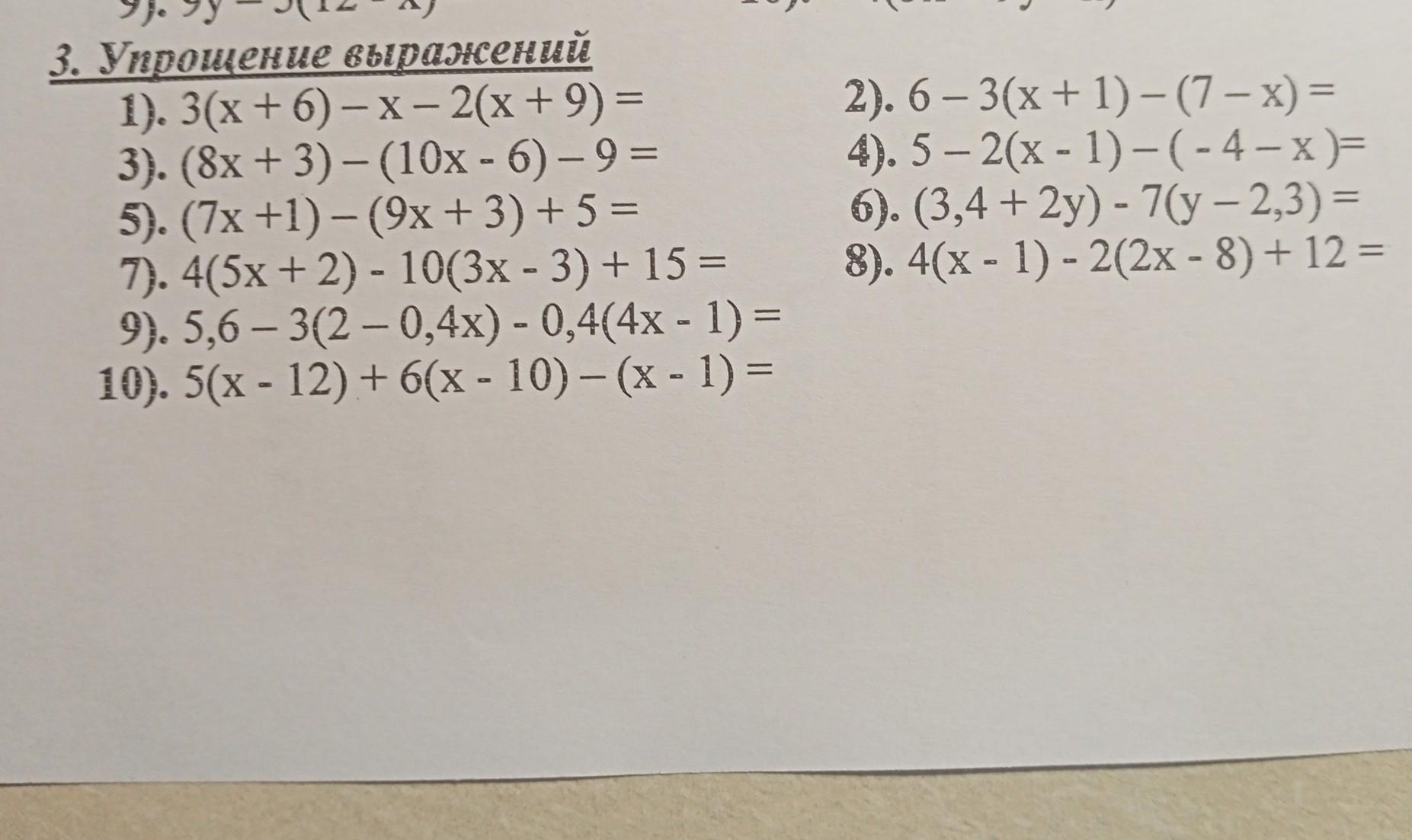 9. 5,6-3(2-0,4x)-0,4(4x-1)=5,6-6+1,2x-1,6x-0,4=-0,4x