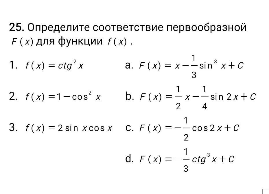 Ещё там пункт e. F(x) = - ctgx - x + C.