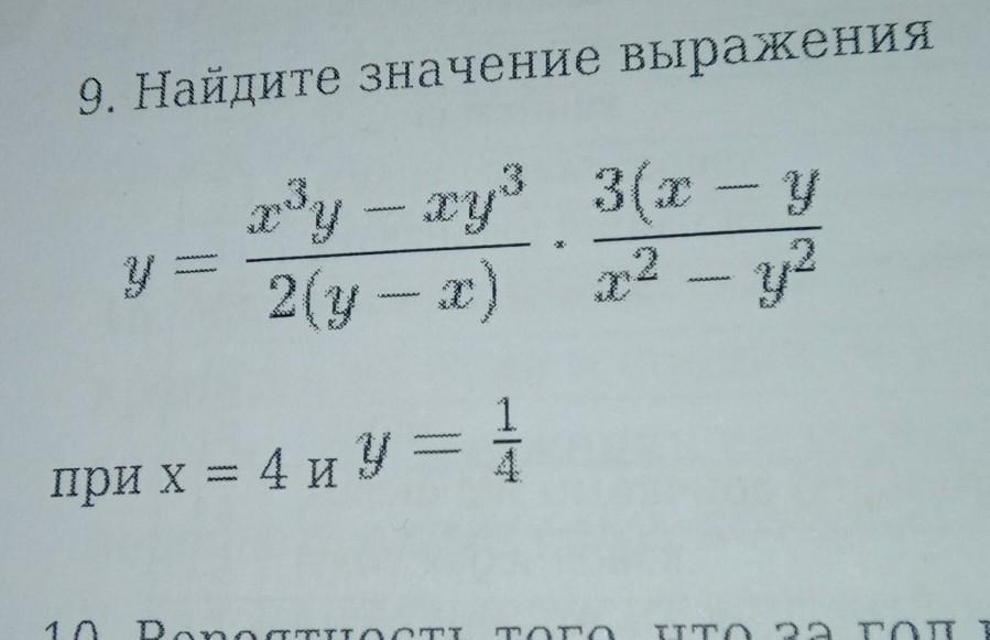 9. Найдите значение выражения у ху — ху* 3(х – у 2(y-2) х2 - y2 ( при х = 4 и у = -