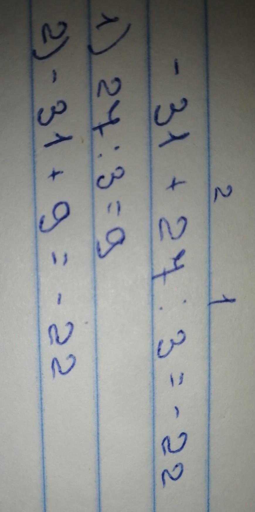 2) -31 + 9 = 9 - 31 = 9 - (9 + 22) = 9 - 9 - 22 = -22