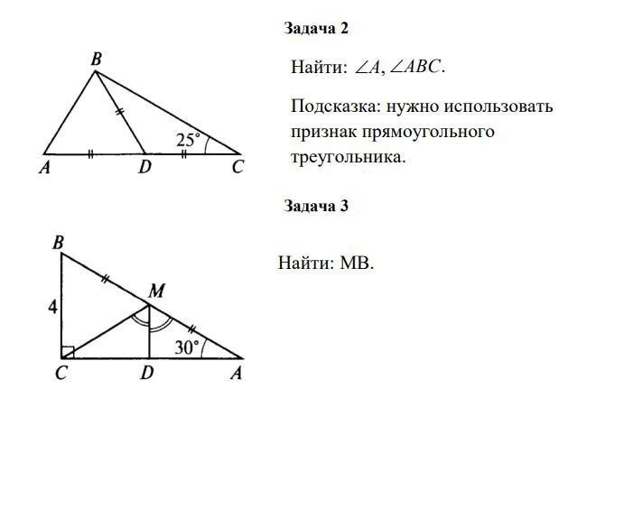 1) если медиана равна 1/2 стороны к которой она проведена то треугольник прямоугольный ABC=90° A=65°