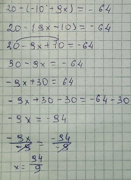 20-(-10+9х)=-64